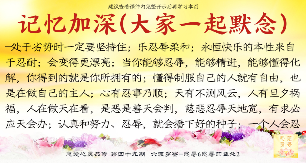 因为他知道这个世界上一切是假的,所以他就会忍辱。因为世界上很多事情不是真的,一会儿就没了,不就假的吗?忍辱就是把假的东西慢慢化掉它就可以了